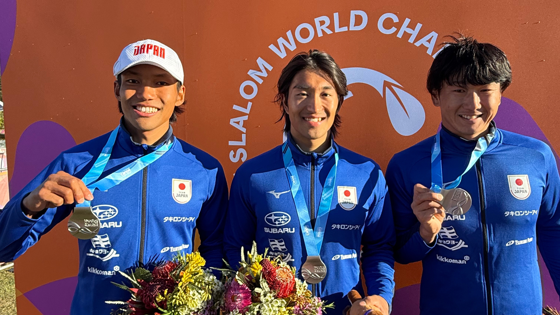 本競技は3人1チームでスラロームコースを滑走し、全員がゴールするまでのタイムを競うレースです。日本チームは武藤裕亮、田中雄己選手(ミキハウス)、足立和也選手(SUS株式会社)の3名で出場し、ペナルティなしの95.36秒という好タイムを記録しました。優勝したフランスにわずか0.06秒差で続く2位となり、日本代表として世界選手権初の銀メダルを獲得しました。